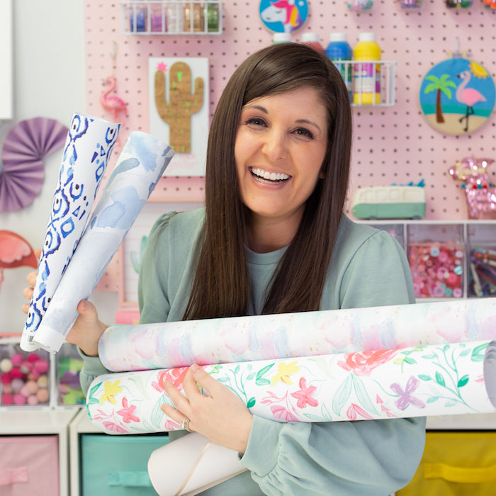 It is no secret I have been a fan of peel and stick wall paper for years! This month for National Craft Month I am sharing three crafts you can make with scraps of wall paper right here and on NBC Texas Today, Studio 5 Salt Lake City and NBC Atlanta & Company!