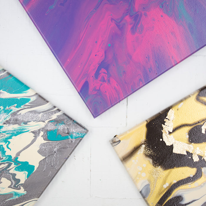 I love how Testors Marbling Medium makes paint pouring a cinch! It is so fun to see how each canvas turned out differently!