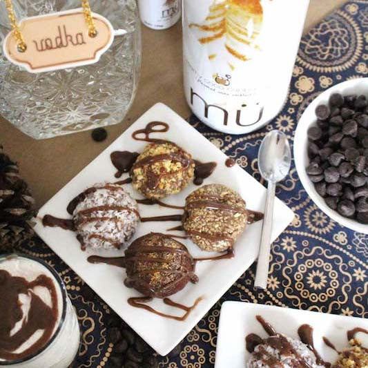When you have a sweet tooth, sometimes you just have to go all out with a rich and chocolatey indulgence. There is no better way to satisfy that craving than with flavors of chocolate & cappuccino blended together in to small bites of drunken deliciousness infused with mü, a delicious coffee cocktail, and washed down with a Double Chilled mü Cappuccino. Seriously this combination will change your sweets game forever!