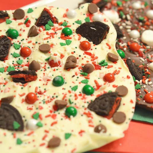 Holiday bark is one of the easiest and prettiest treats for the holidays. It is great to cut up and individually wrap for gifts or keep it all for yourself!