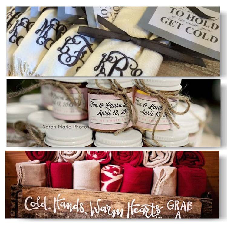 I guess it's the time of year that I have cold weather on my mind, but regardless, this little wagon with fleece blankets that Sarah used at her November wedding last fall is too sweet. The blankets can be purchased at a variety of discount retailers (think WalMart, Dollar Tree, Target) and then with the help of some pallet wood you can hand letter or paint your own sign. If a wagon isn't available, try wicker baskets. You could easily grab some at a thrift store and give them a new life with a little spray paint.