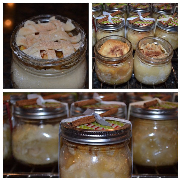 - Take the extra dough and make pie tops for each jar. You can choose to do a criss-cross top by cutting slices of dough. If you choose to do a full cover top use the jar lid to determine size. Make sure to cut slits in the dough to allow heat to vent during baking.
