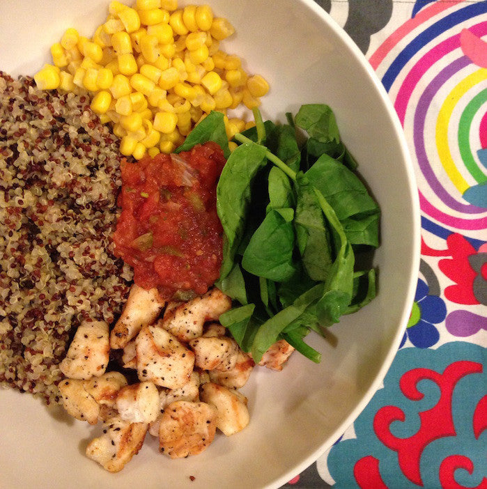 - Combine grilled chicken, corn, quinoa, baby spinach and salsa for a delicious and healthy salad