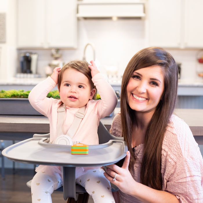 The Nomi High Chair is suitable for newborns through teens! I love that it allows our sweet girl to be a part of our family dinners and it is a dream to clean! From the moment I put Lily in the Nomi, her posture improved because it allows her to sit up straight turn at ease and it keeps her feet at 90-degree angle with the footrest. Watch the video below to see all the features and why I think the Nomi High Chair is the best on the market!