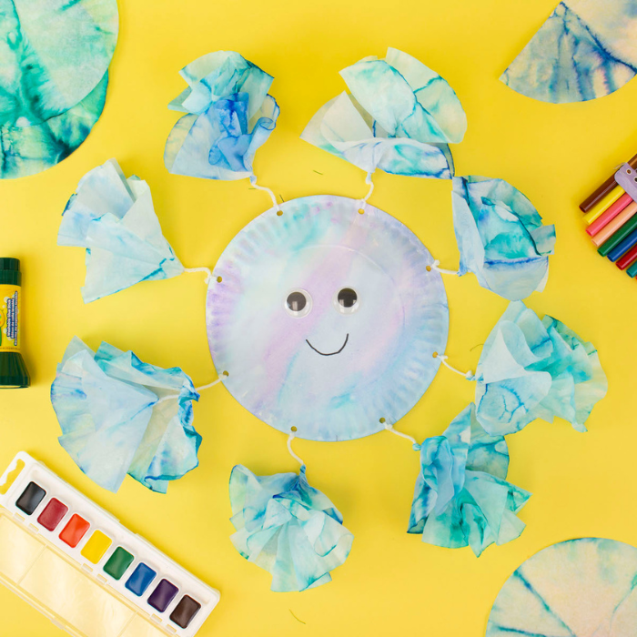- Glue the googley eyes with the washable glue to the middle of the paper plate and use the silly scents markers to create the mouth.