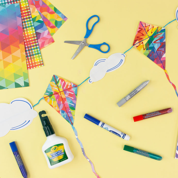 Hello, Campers! Flying a kite outside is a great activity to do. You can make a simple and easy paper kite banner to add some color to your room