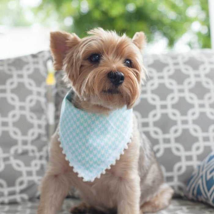 I absolutely adore dogs, especially my Kennedy. He's an 8 year-old Yorkie. I like to dress him by the season but summer can be too hot for him to wear clothes. The only thing he wears during the hot summer months is a doggy bandana.