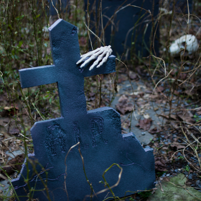 - Once the design is complete, it is now time to spray paint! In a well ventilated room or outdoors place the grave markers on tarp. Make sure to read the product label for proper application and safety instructions.