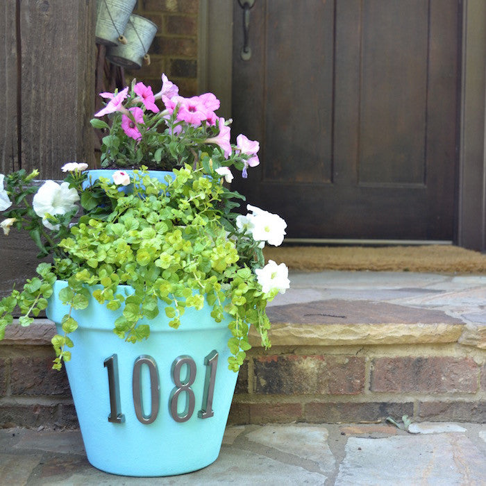 - Remove the backings from the mailbox numbers and firmly press on the center of the base pot. If you are having issues with them sticking just add glue to the back.