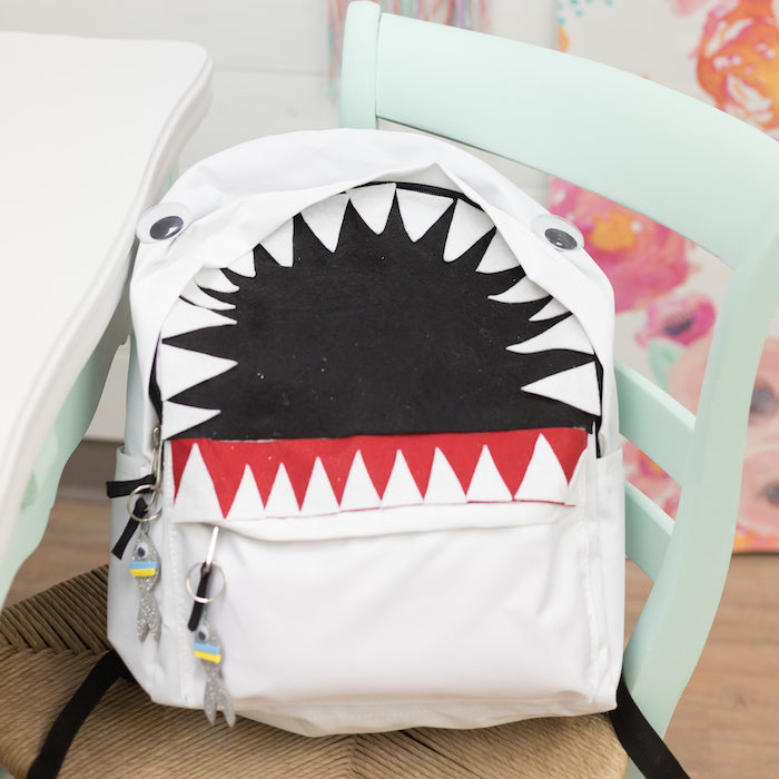 Shark week meets back to school! Take a bite out of back to school with this sharky backpack! Make it easily with Beacon Adhesives Fabri-Tac!