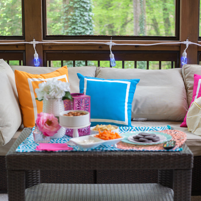 Summer is here and it is my favorite time of year to entertain! Since the weather has been a bit crazy and the pollen is out of control I am focusing my entertaining on my screened in porch and it needed a little bit of a makeover to get ready for festivities. I am so excited to partner with Enbrighten to add a pop of color to my space. Color really does change everything! Check out the video to see how I added a pop of color with the Enbrighten's Cafe Lights in my screened in porch and Enbrighten's Landscape Lights to light up my yard and welcome my family and friends.