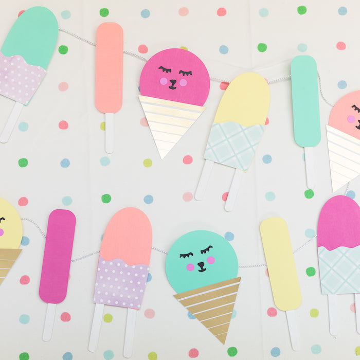 Summer is here and it is time for some fun! Grab your favorite colorful paper and start crafting! We made it super easy with a free downloadable template. You pick the colors and create your own banner!