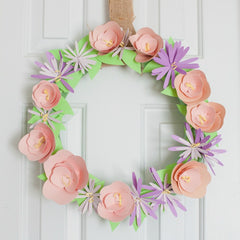 cat-home , creative inspiration , Cricut , door , Explore two , home , paper flower , pastel , spring , wreath
