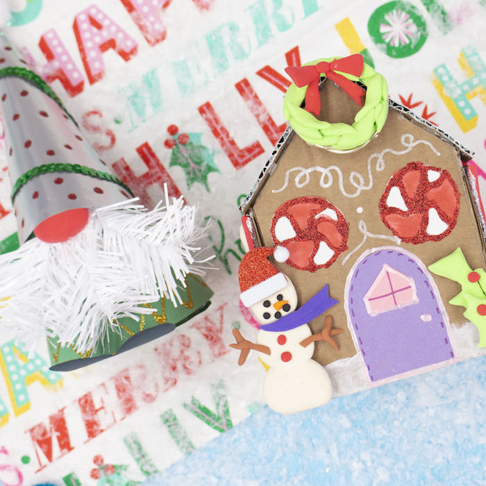 - Use model magic to to decorate the sides of the house, make a wreath for the peak of the house.