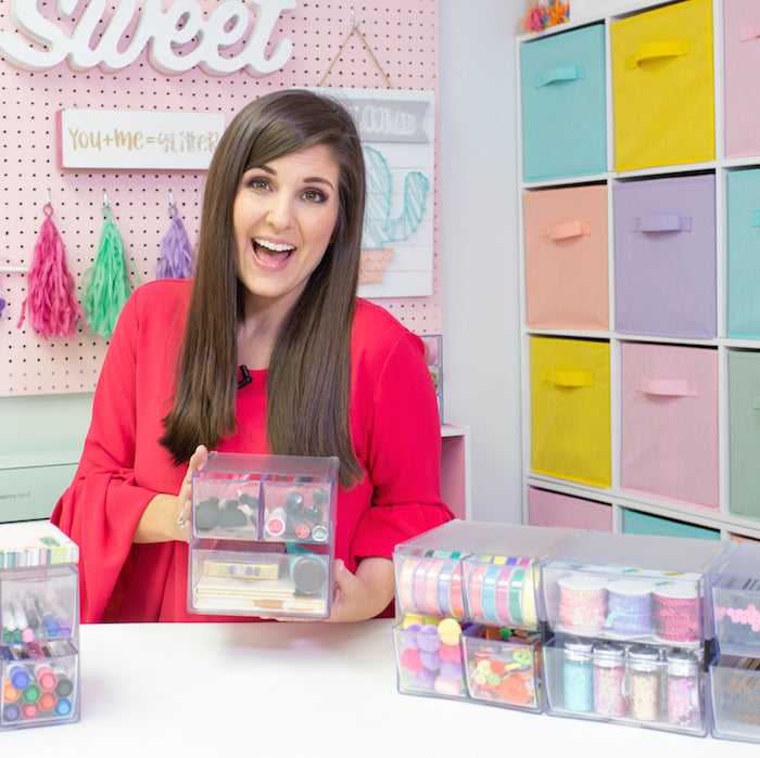 It is January and it might as well be national get organized month. Even my husband is organizing his side of the closet - which has not happened in years. If you have followed me for a while you know I love Deflecto's craft storage products, not only for storing craft supplies but also for getting organized around the house and studio! I love that the products are clear so you can quickly and easily see exactly what you need. Most of Deflecto's storage products are stackable for storage in small spaces. Today I am sharing 5 ways to use the Deflecto Stackable Storage Cubes to help start your year on the path of organization!