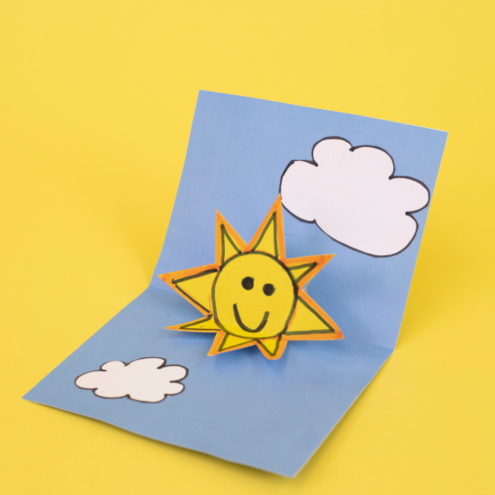 - Apply glue to the pop out tab on the card and attach the sun.