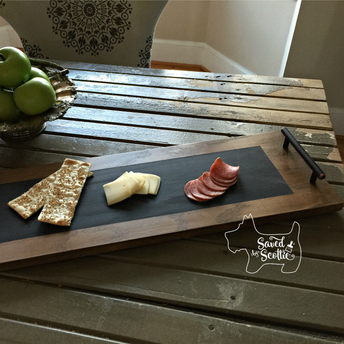 Once the paint is dry, you’re done! You can use chalk on the center to label your foods if you want to (or not in my case, because I don’t like my handwriting). It makes a lovely display for serving and looks nice just on the table by itself. It would make a great housewarming or hostess gift too.