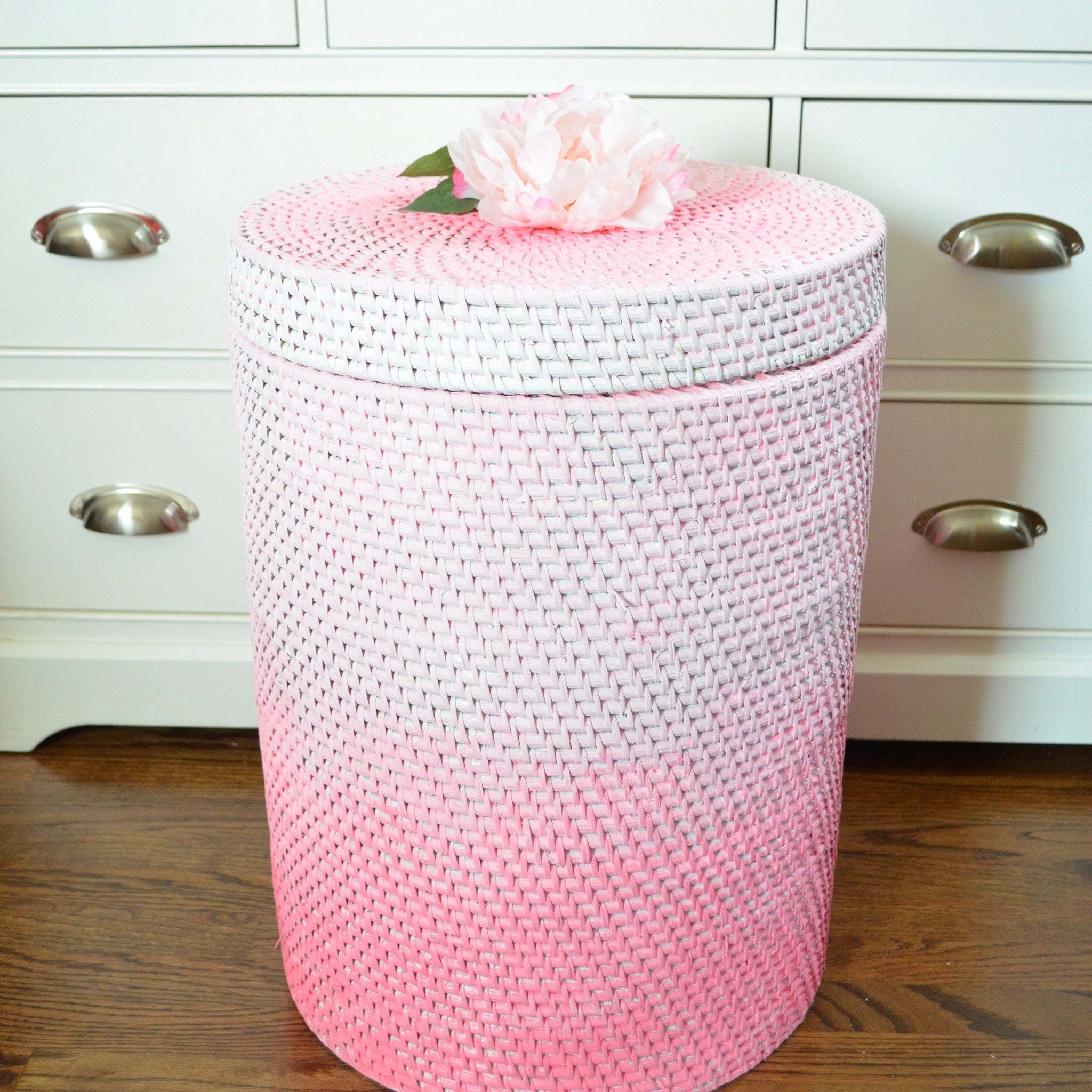 I still love anything and everything ombre, from hair to décor, and that was my inspiration for this hamper. I wanted to create a girlie DIY ombre hamper that was so adorable that it could be for a nursery, but so chic that it could work for an adult. I chose pink, but you can really do this with any color you like. You can make it simple subtle, or bright and fun. I finished it off with a faux flower to make it a little extra girlie and special.