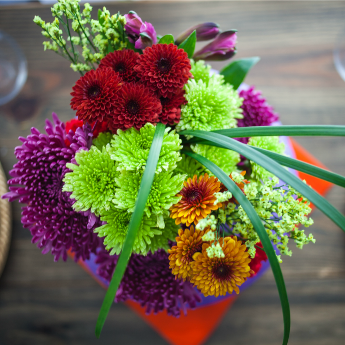 Lanterns are not just for summer entertaining. Colorful lanterns make a great fall floral centerpiece.